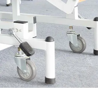 配有4隻可升降醫用輪,兩側帶有刹車腳,床體輕鬆移動,一腳式固定更方便。床體最大承載力200kg。