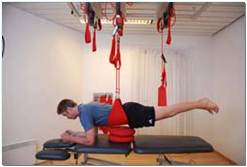 懸吊訓練是運動治療的一種方式,在懸吊方式下進行運動訓練有很多便捷的地方。幾乎肢體的所有開鏈與閉鏈運動都可在懸吊方式下完成,並且有多層次負荷強度可以選擇。